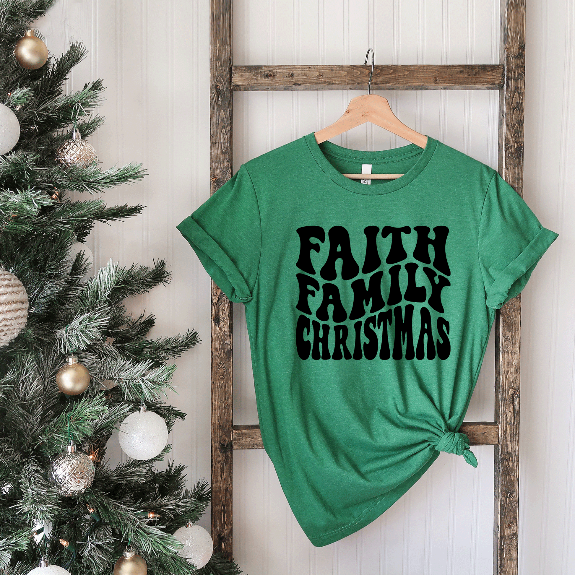 Faith Family Christmas Wavy | Short Sleeve Crew Neck